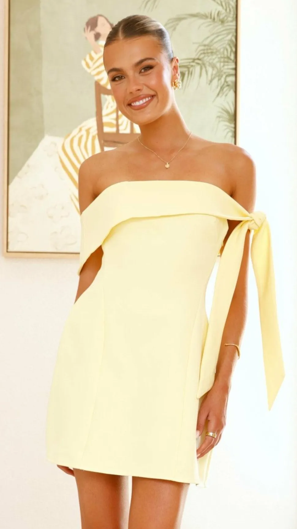 – Strapless design with bow shoulder detail