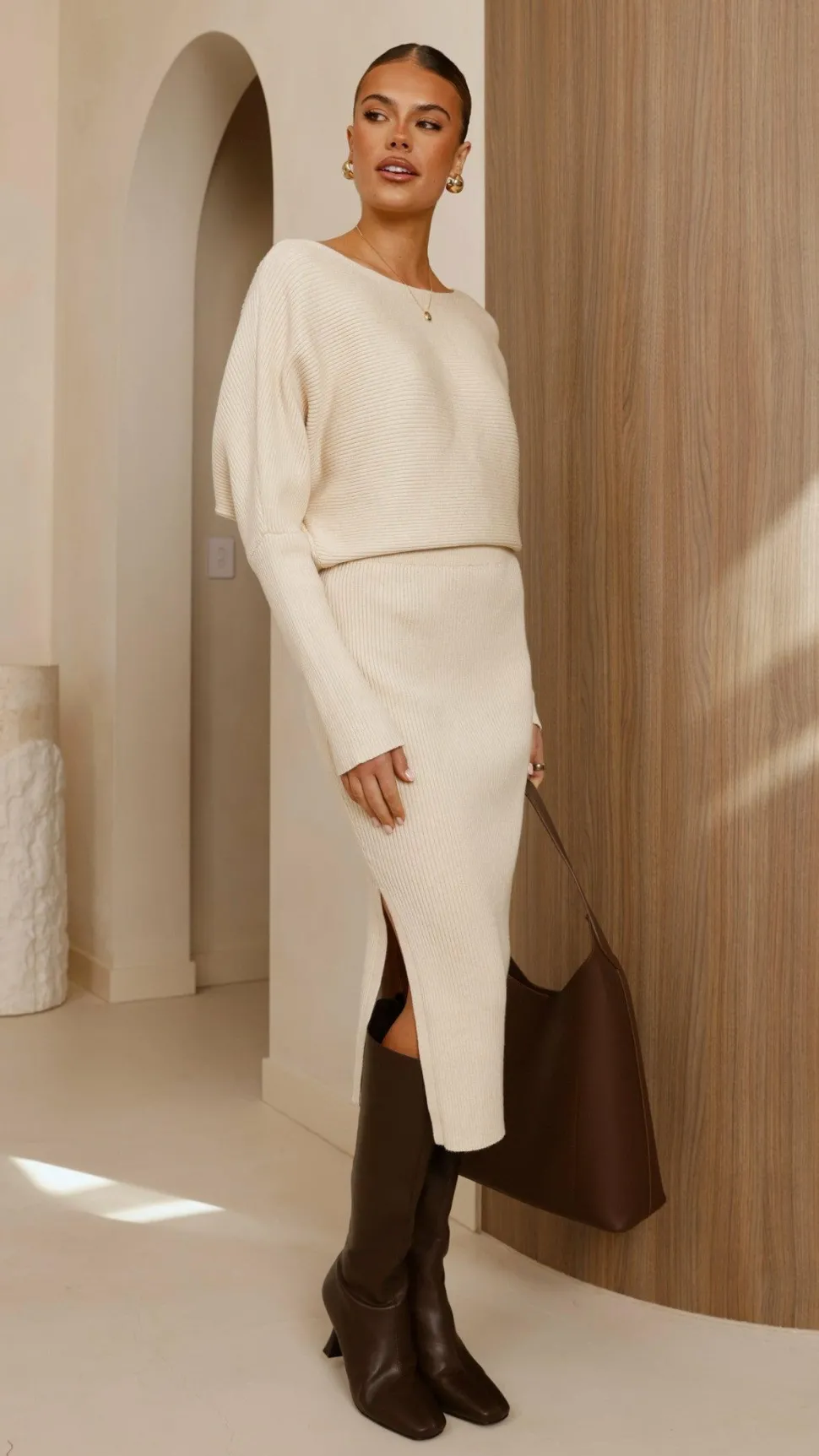 Get the look! Corbin Boot – Black, & Iluka Knit Top – Beige