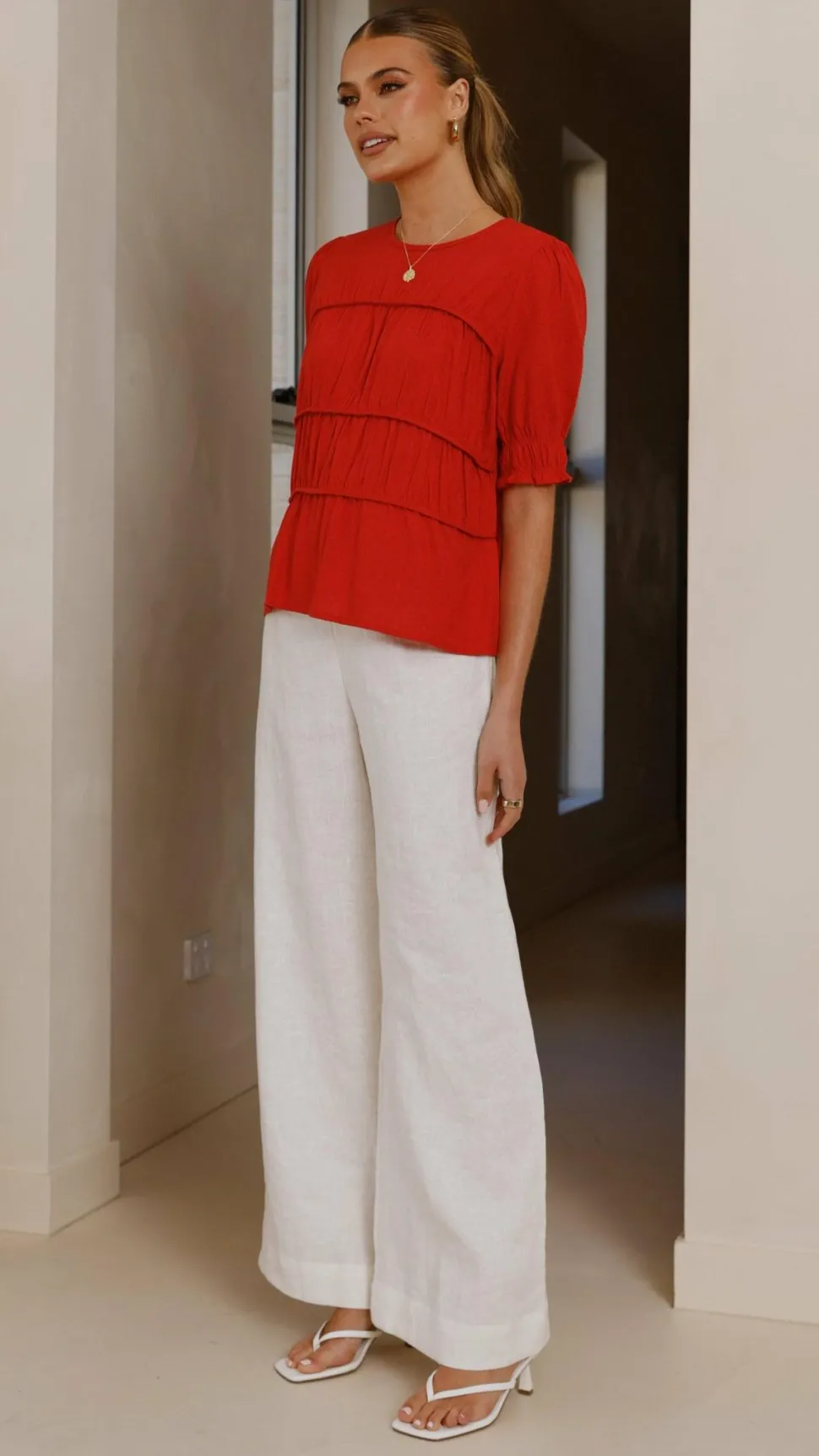 Get the look! Xami Heel – White & Karah Pants – White