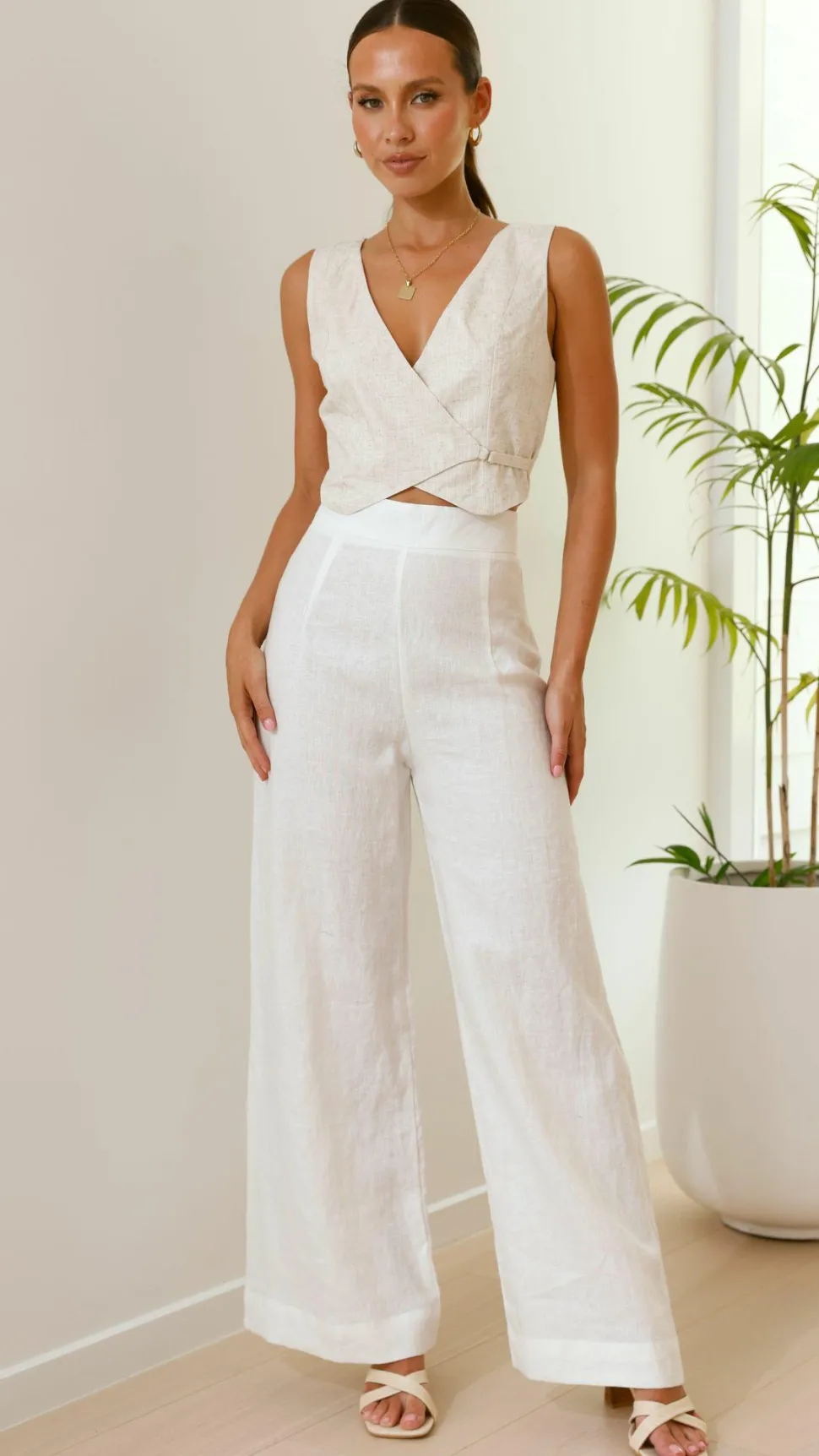 Get the lookMilsey Crop Top – White,Ukko Heel – Camel Raffiaand