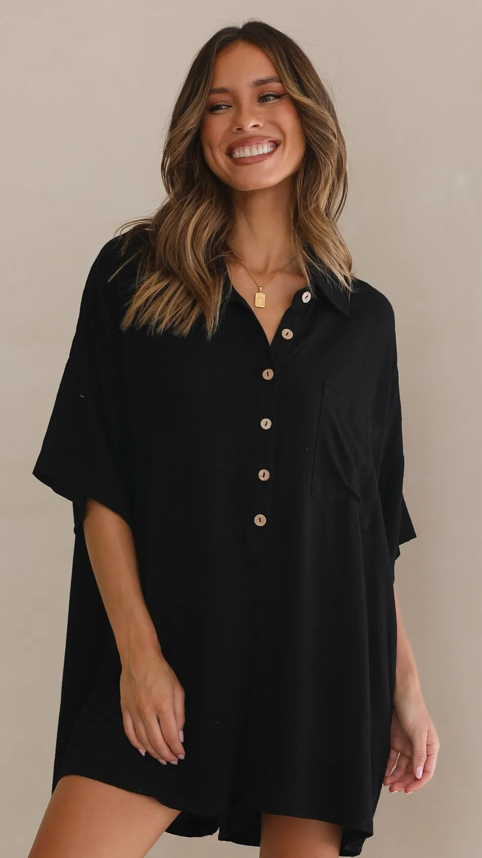 – Buttons down front