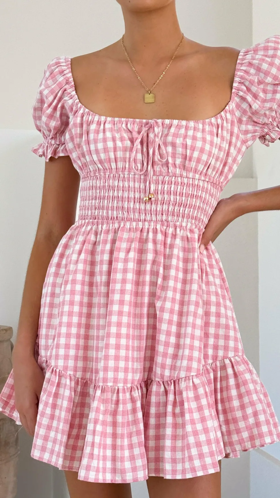 – Square elasticated neckline