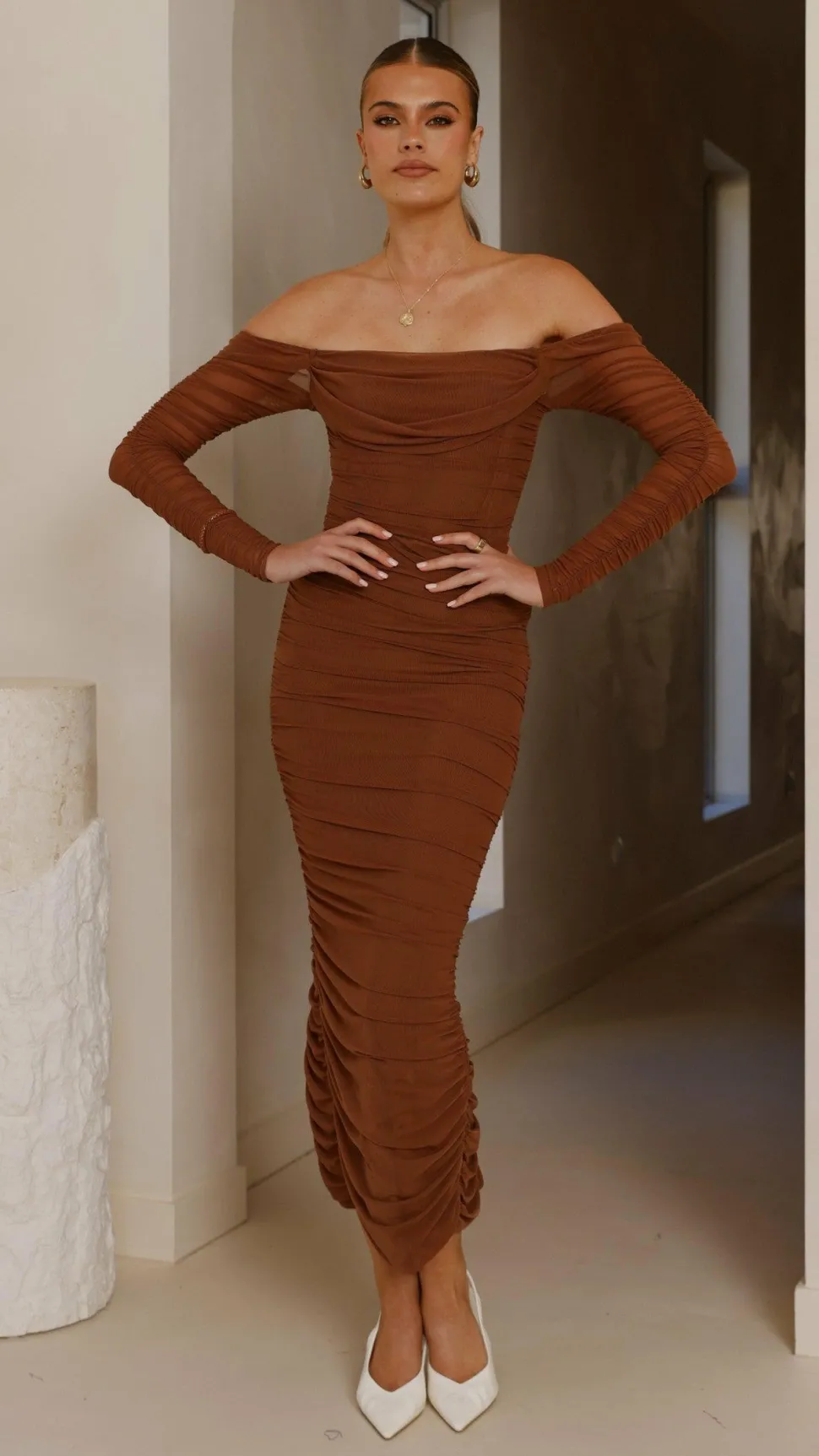– Off shoulder mesh sleeves
