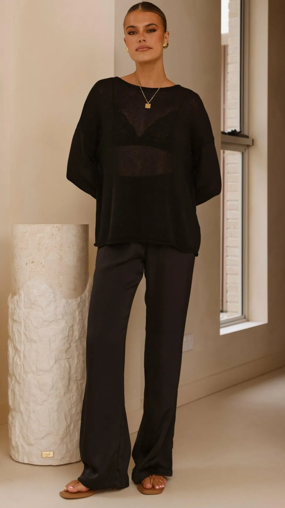 Get the look! Imogen Button Pants – Black &Yaelle Sandals – Teak