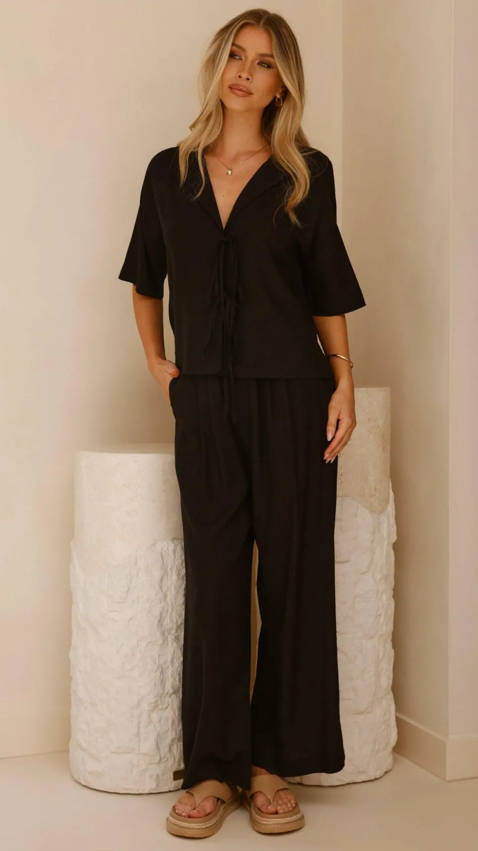 Get the look! Amaya Slide – Clay & Louise Top – Black
