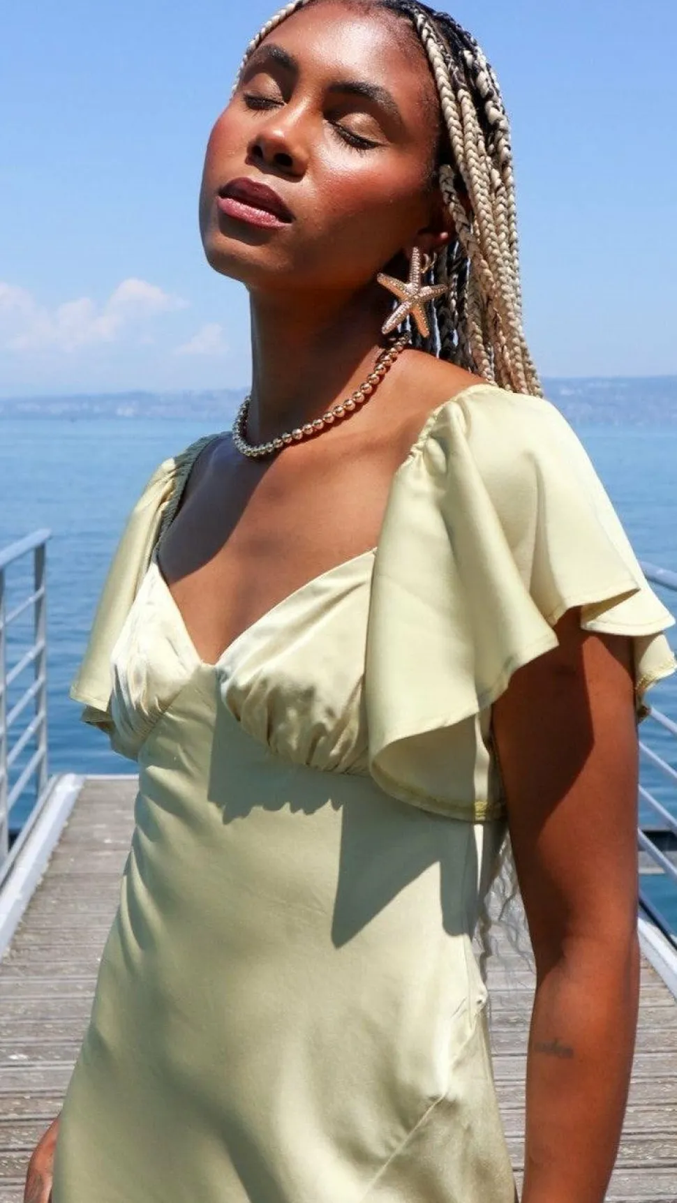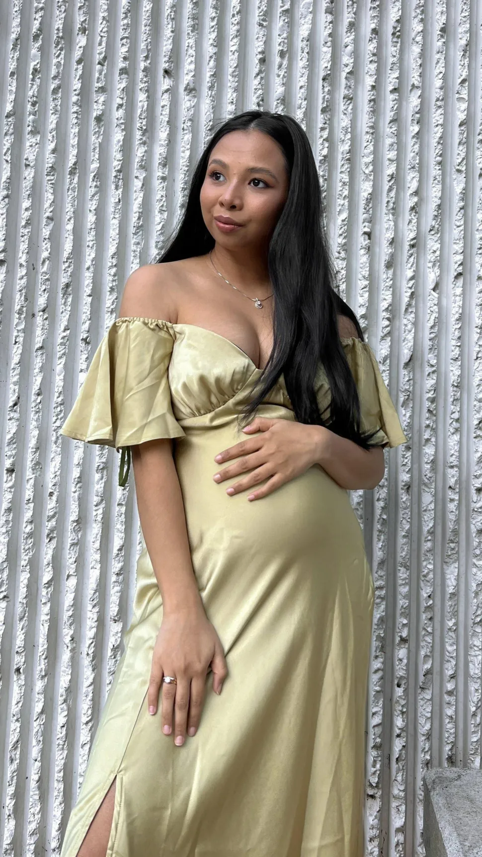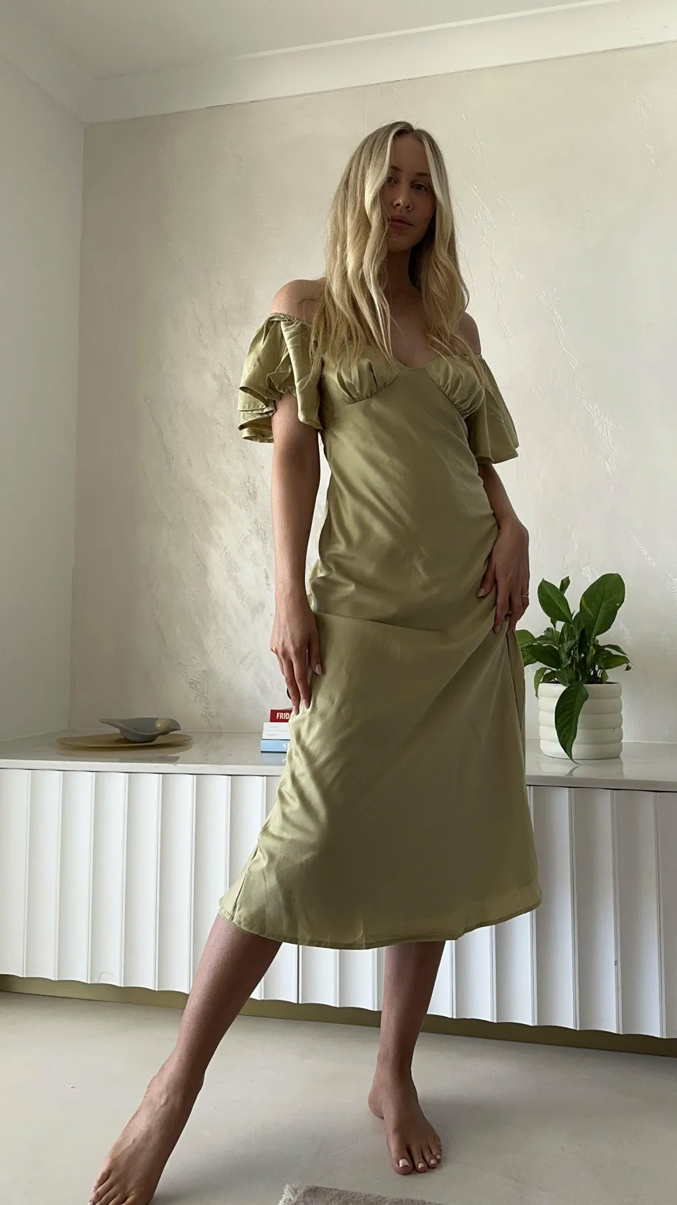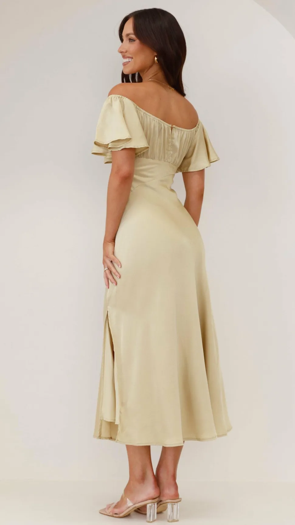 Our Louisa Dress features beautiful butterfly sleeves, flattering off shoulder design, pleated bust and a flirty front slit. This beautiful floaty design takes elegance to the next level – you’ll be sure to turn heads in this number. Pair this piece with ourBalton Mules – Sugar BrownandHollow Circle Necklace – Gold