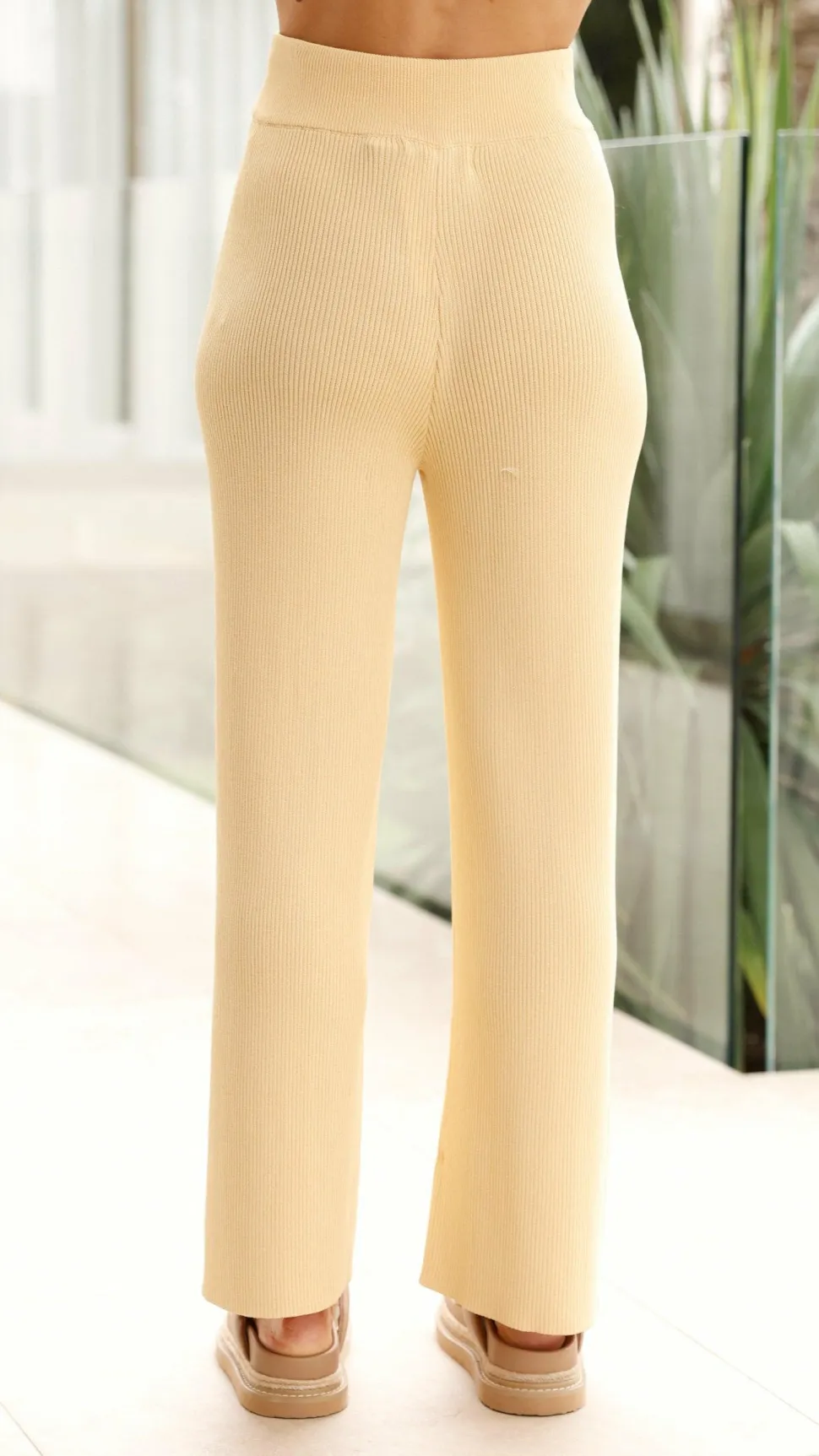 Get the look! Lyra Long Sleeve Ribbed Top – Yellow & Amaya Slide – Clay