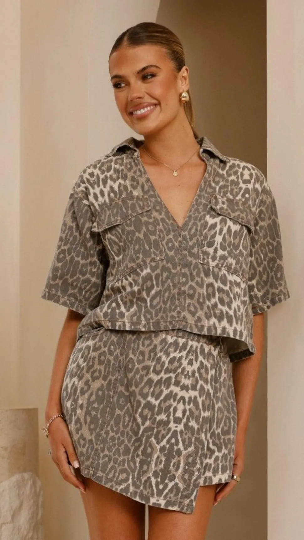 – Wrap design with button closure