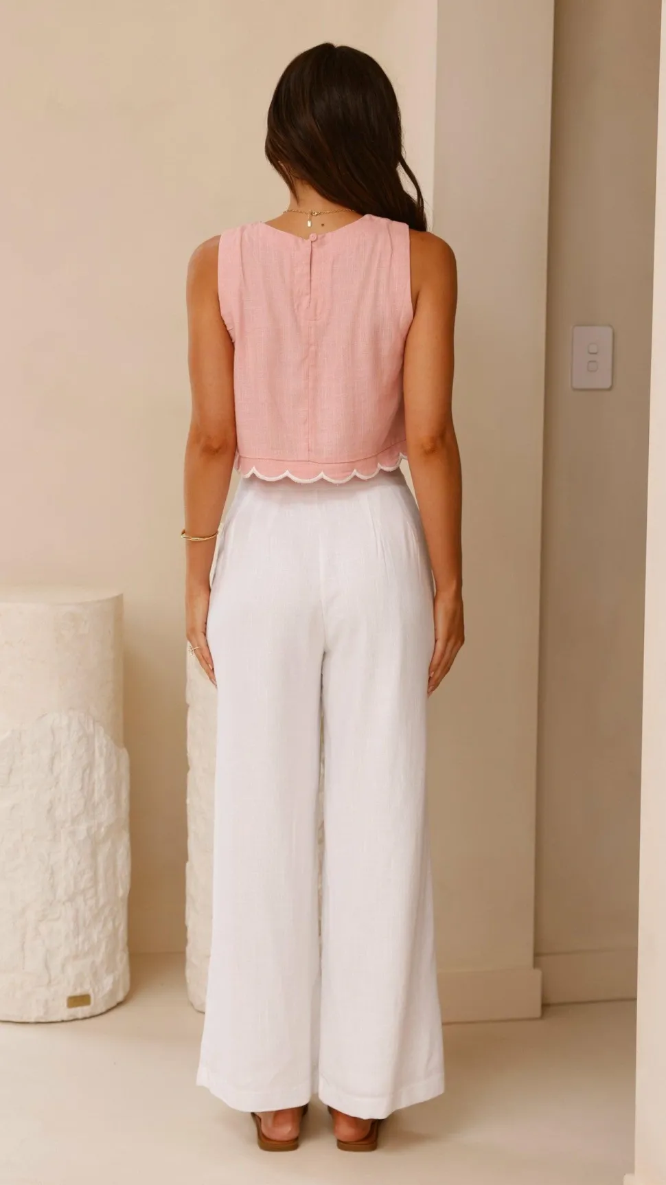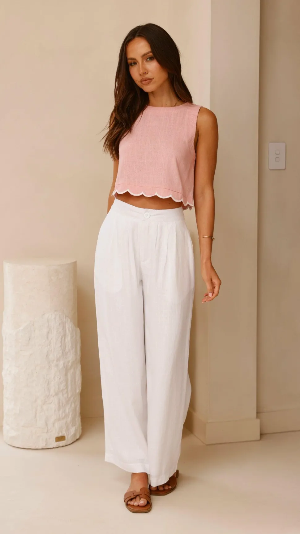 Get the look! Lexi Linen Pants – White & Gretal Slide – Tan