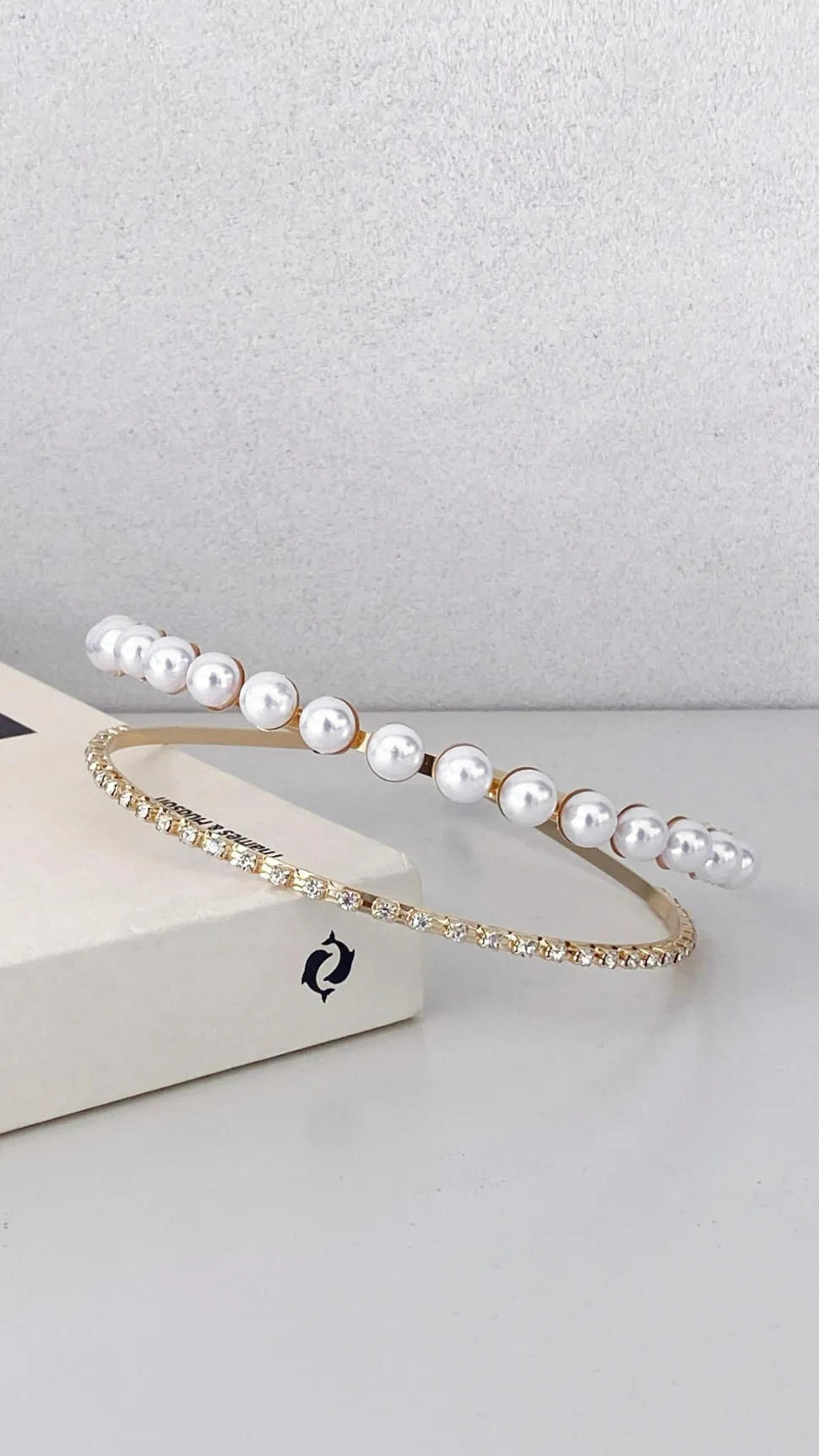 – Fitted gold double headband for easy wear