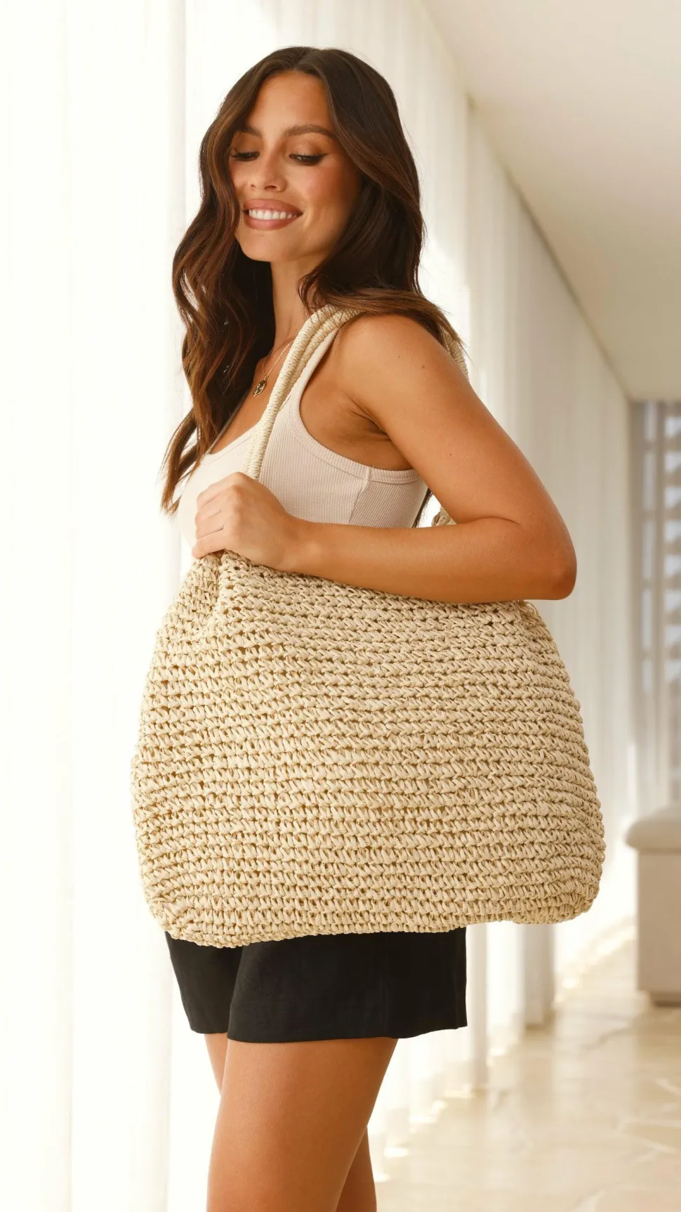 Solana Summer Tote Bag – Beige Straw