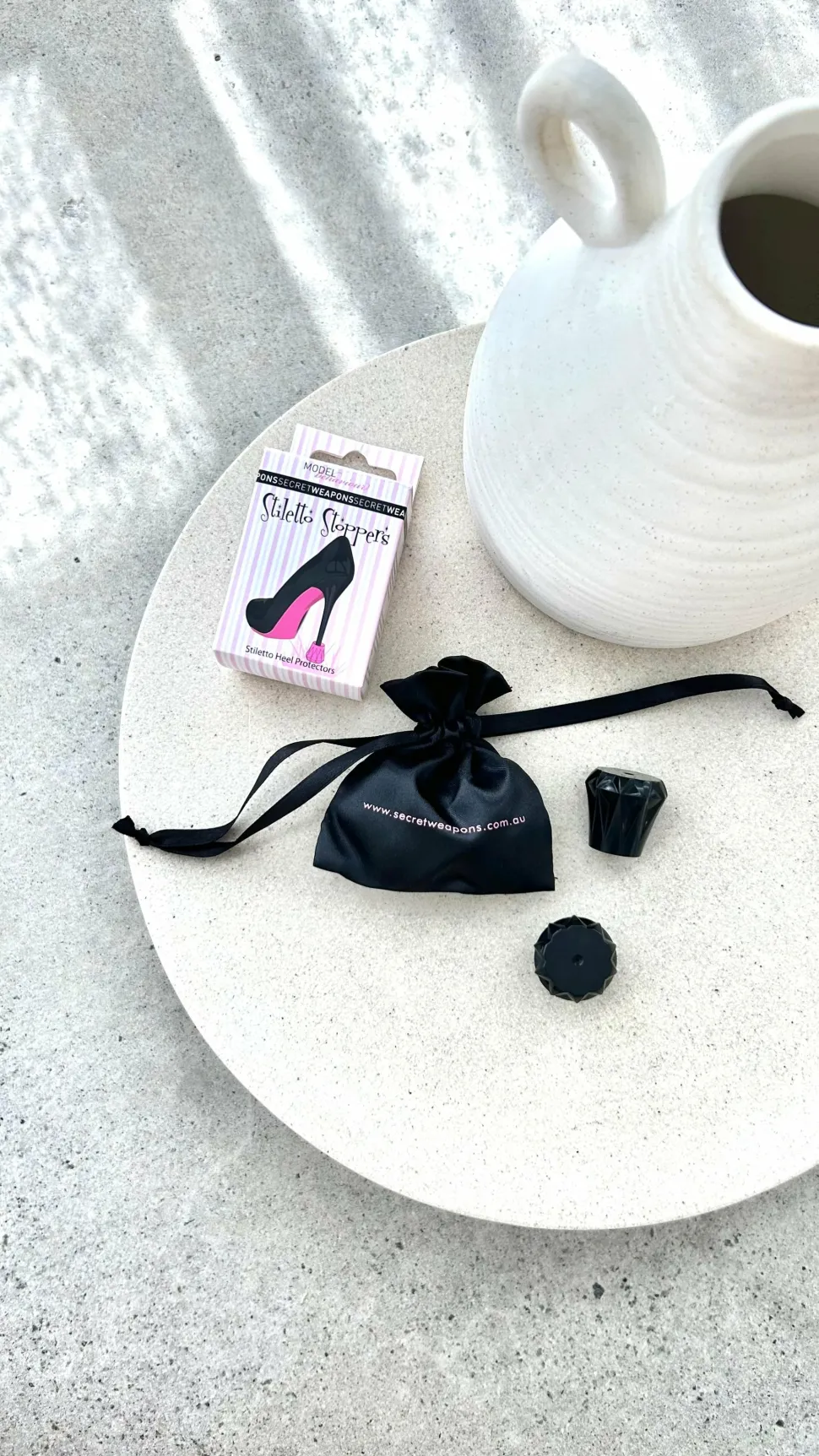 Walk tall and avoid the embarrassment of getting your stilettos stuck in the turf with Secret Weapons diamond faceted Stiletto Stoppers high heel protectors.
