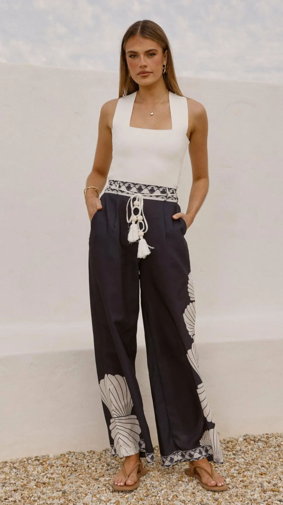 Get the look! Amos Bodysuit – White & Olga Heel – Natural Raffia