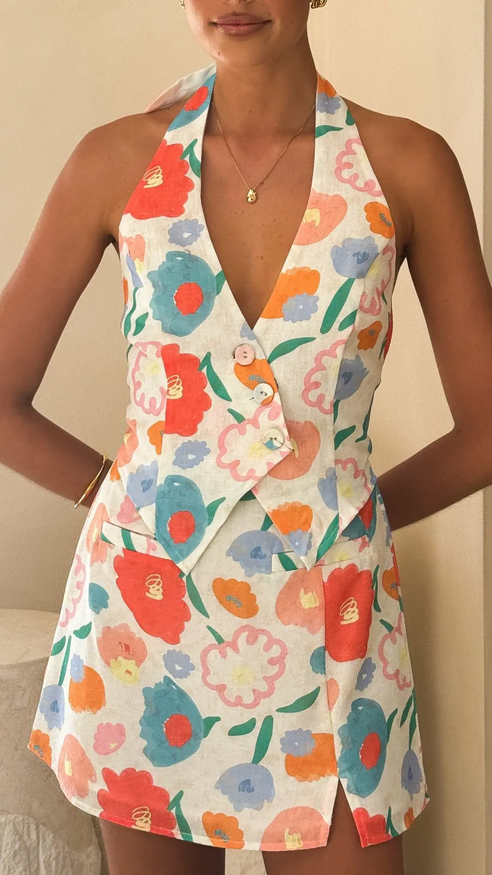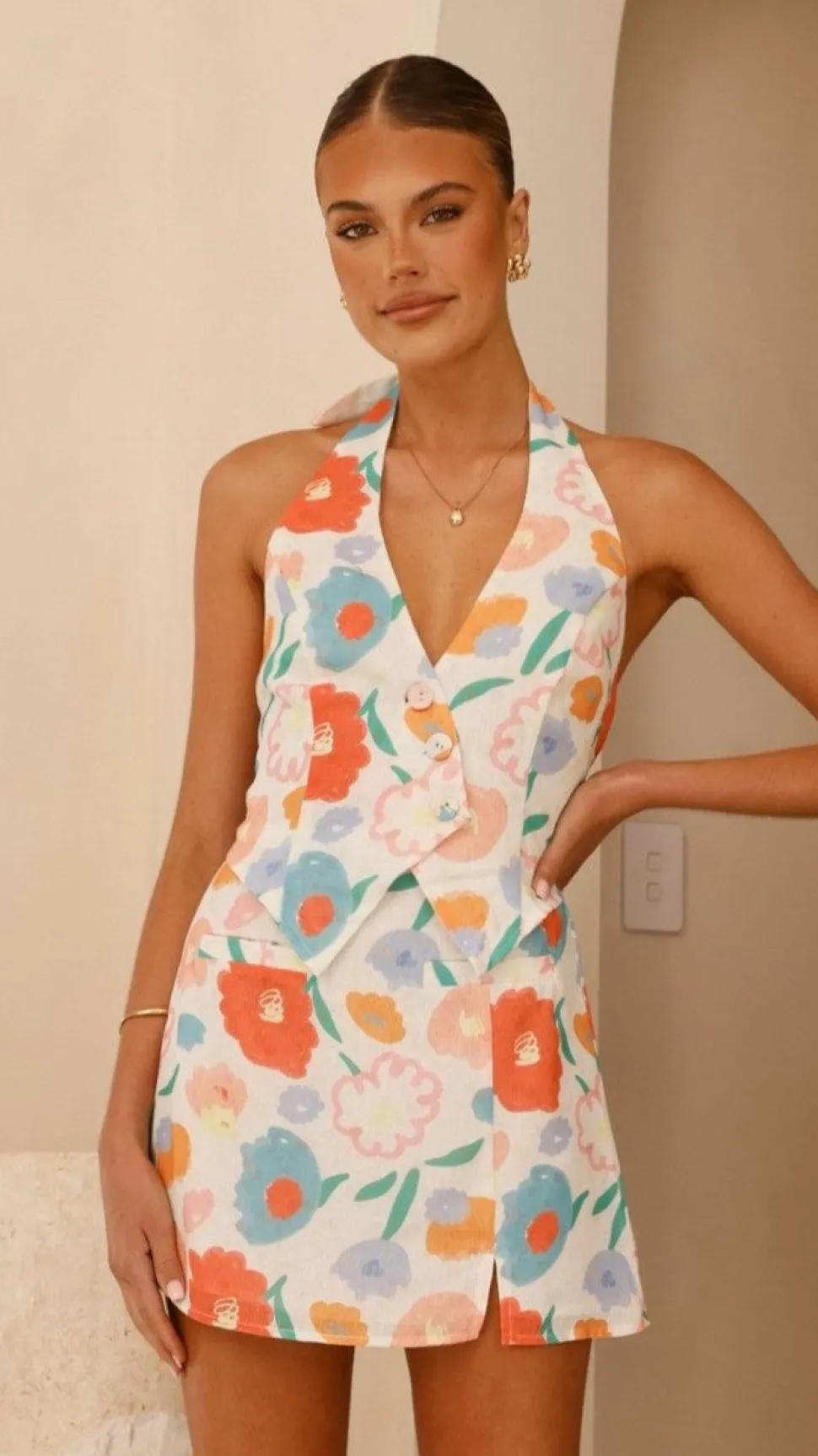 Get the look! Sylvie Vest – Floral Dream & Kendra Heel – White Shine