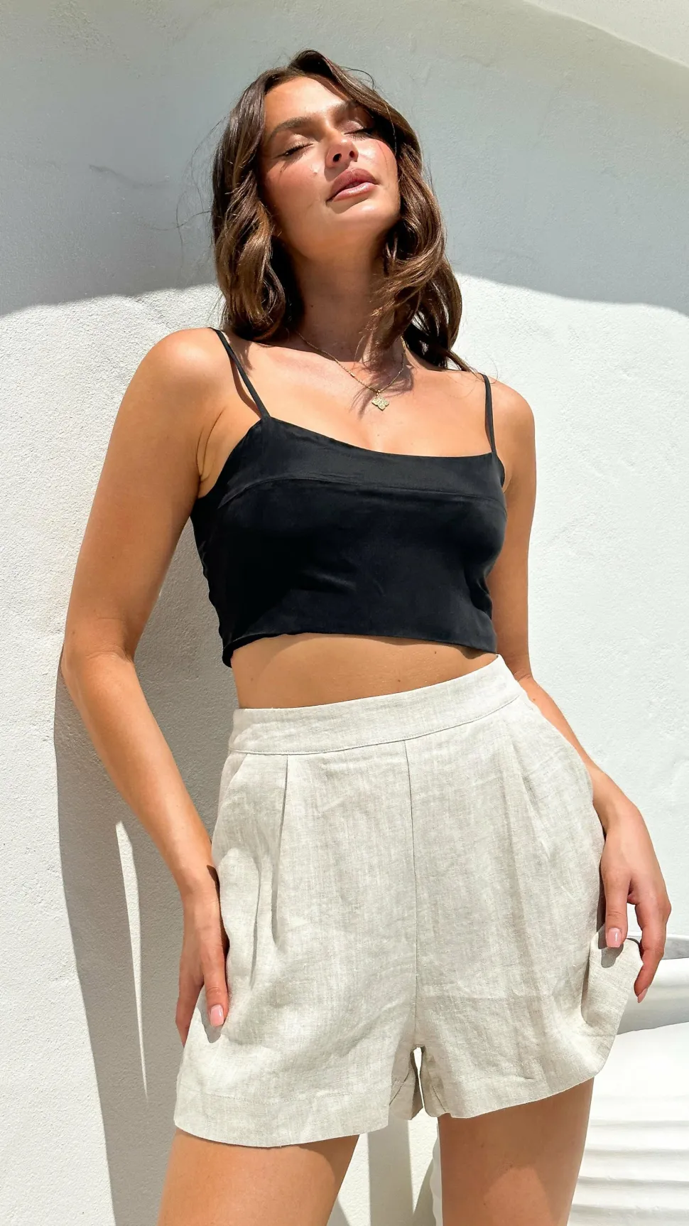 Get the look! Sacha Top – Black ,Sol Sana Mellow Footbed – Black & Lauren Sandal – Blackand Winnie Crop Top – Black Cupro