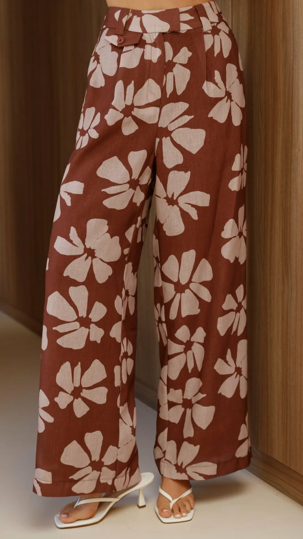 Get the look! Toni Crop Top – Brown Daylillies & Xami Heel – White