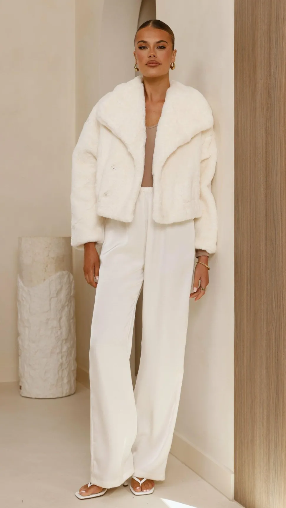 Get the look! Xayden Heel – White, Imogen Button Pants – Cream & Vienna Long Sleeve Top – Mocha