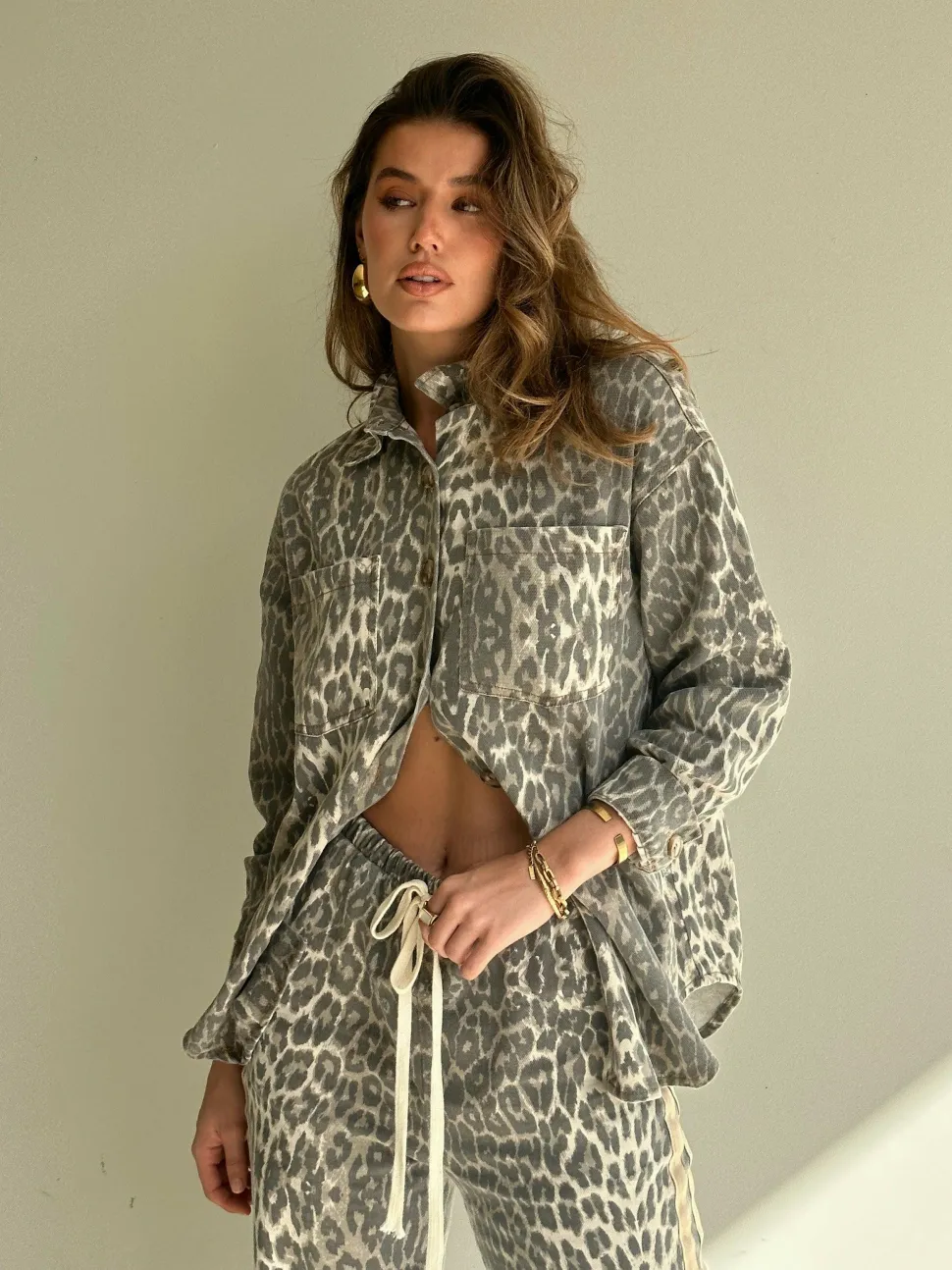 – Relaxed fit shirt / shacket in leopard