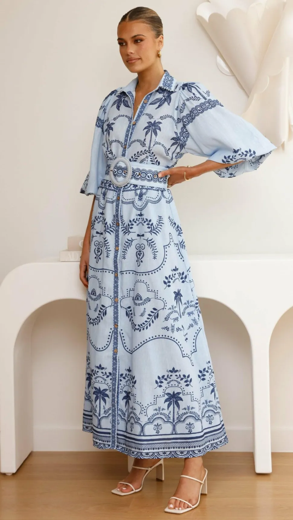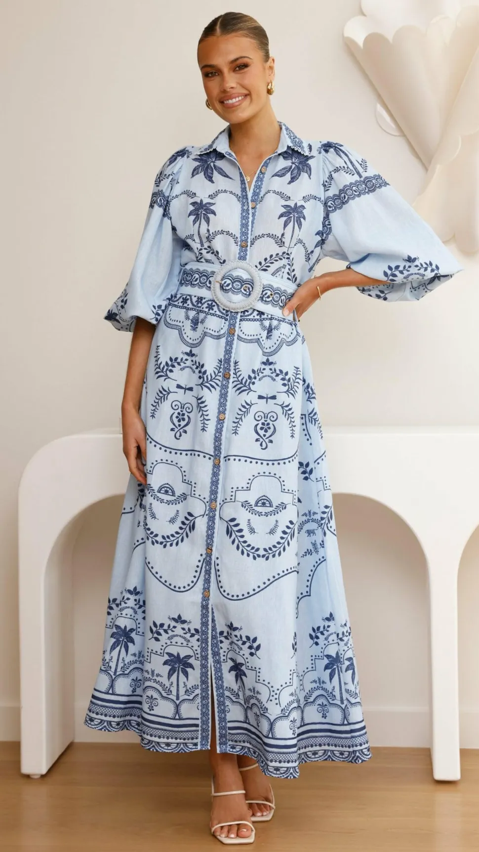– 3/4 balloon sleeves with elastic cuffs