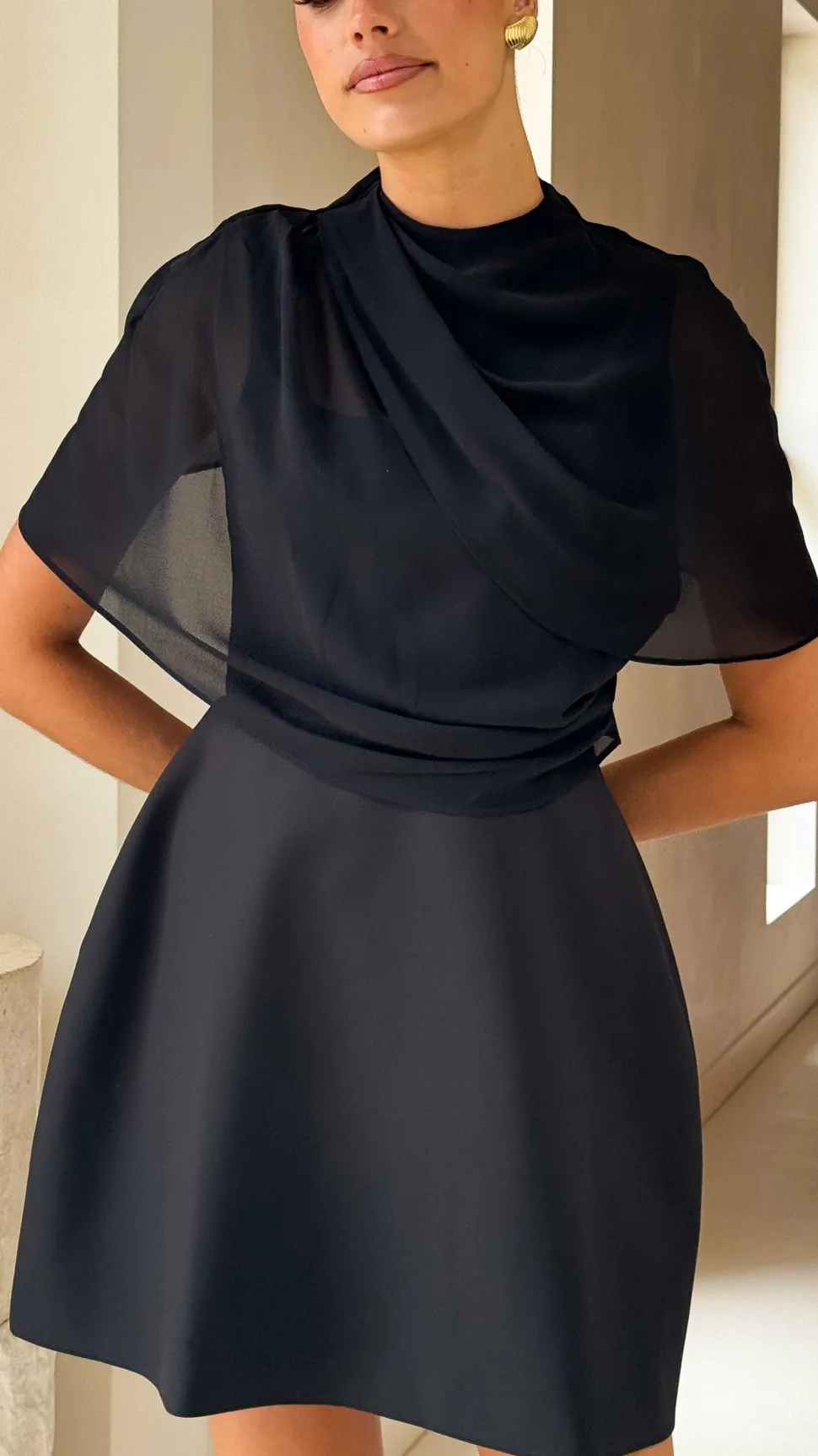 – Attached sheer neck shawl